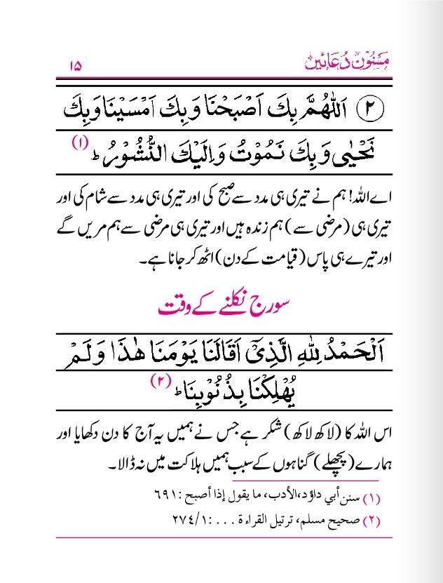 The supplications are presented in Arabic with clear and easy-to-read transliteration and translation in Urdu language. The book also includes explanations and commentary on the virtues and benefits of each supplication, making it a valuable resource for both Arabic and Urdu-speaking readers.
