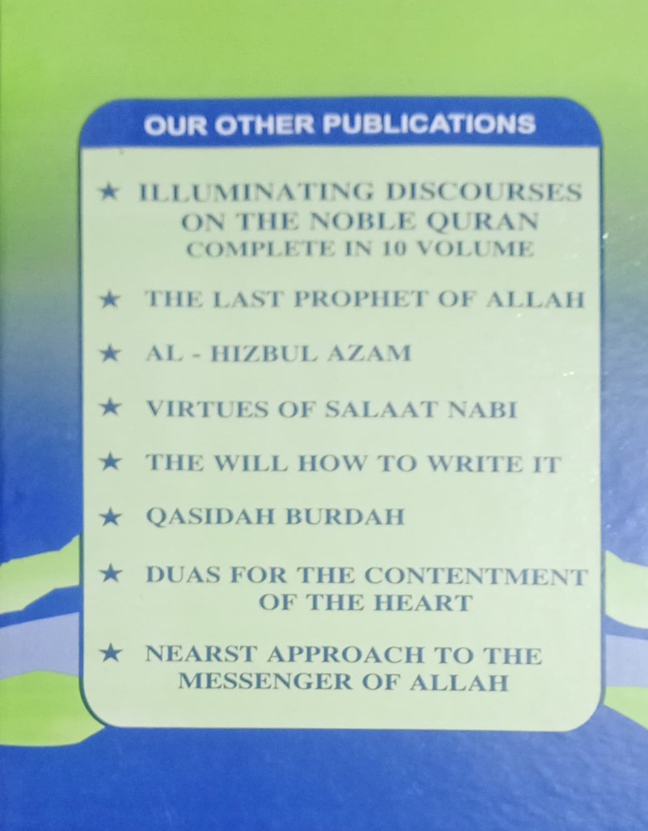 Translated By: MUFTI AFZAL HOOSEN ELIAS