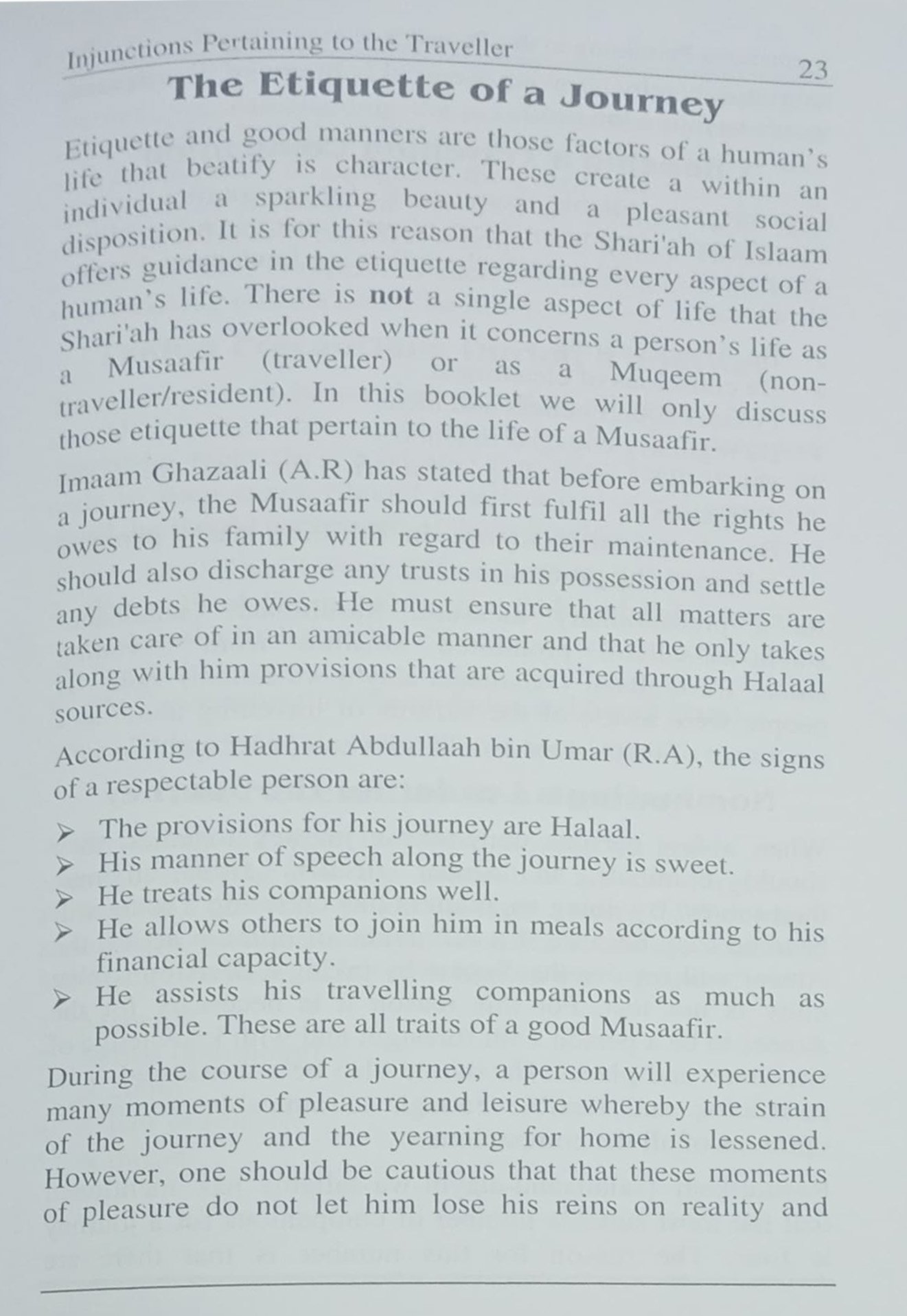 Book Name: INJUNCTIONS PERTAINING TO THE TRAVELLER