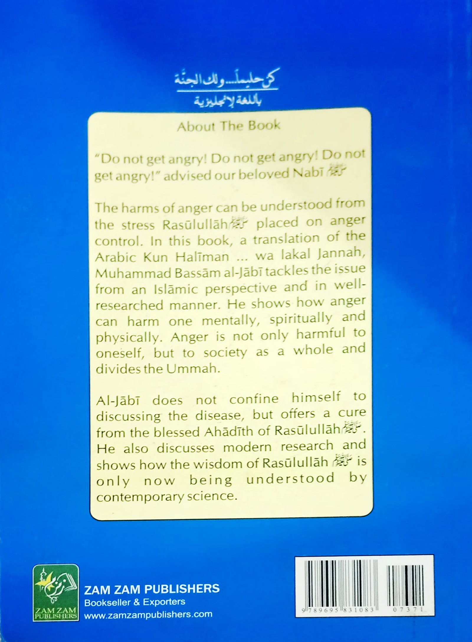 Perhaps this compilation will be a curing balm for every angry person who has concern for his Din and world. I hope that I and all readers will benefits from it. Perhaps by mentioning the Ahadith of Rasulullah ﷺ, this dangerous disease and horrid affliction can be alleviated.