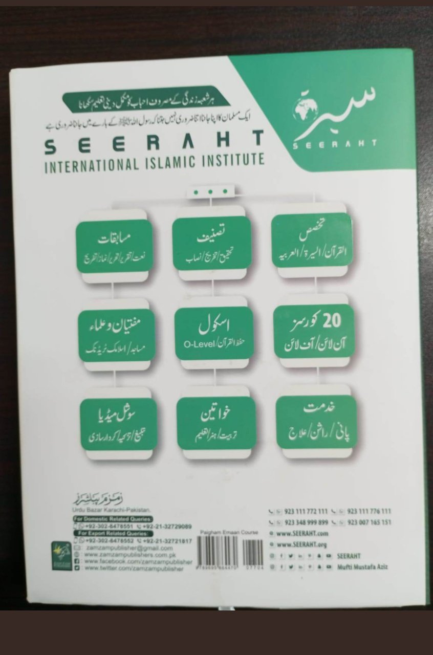 At Zamzam Publishers, we understand the importance of delivering top-quality Islamic literature to our esteemed readers. With years of experience in the field, we take pride in curating products that provide unparalleled insights and knowledge. The “ٰPaigham-e-Imaan-Course” is no exception – it’s a testament to our commitment to offering the best Islamic books and items.